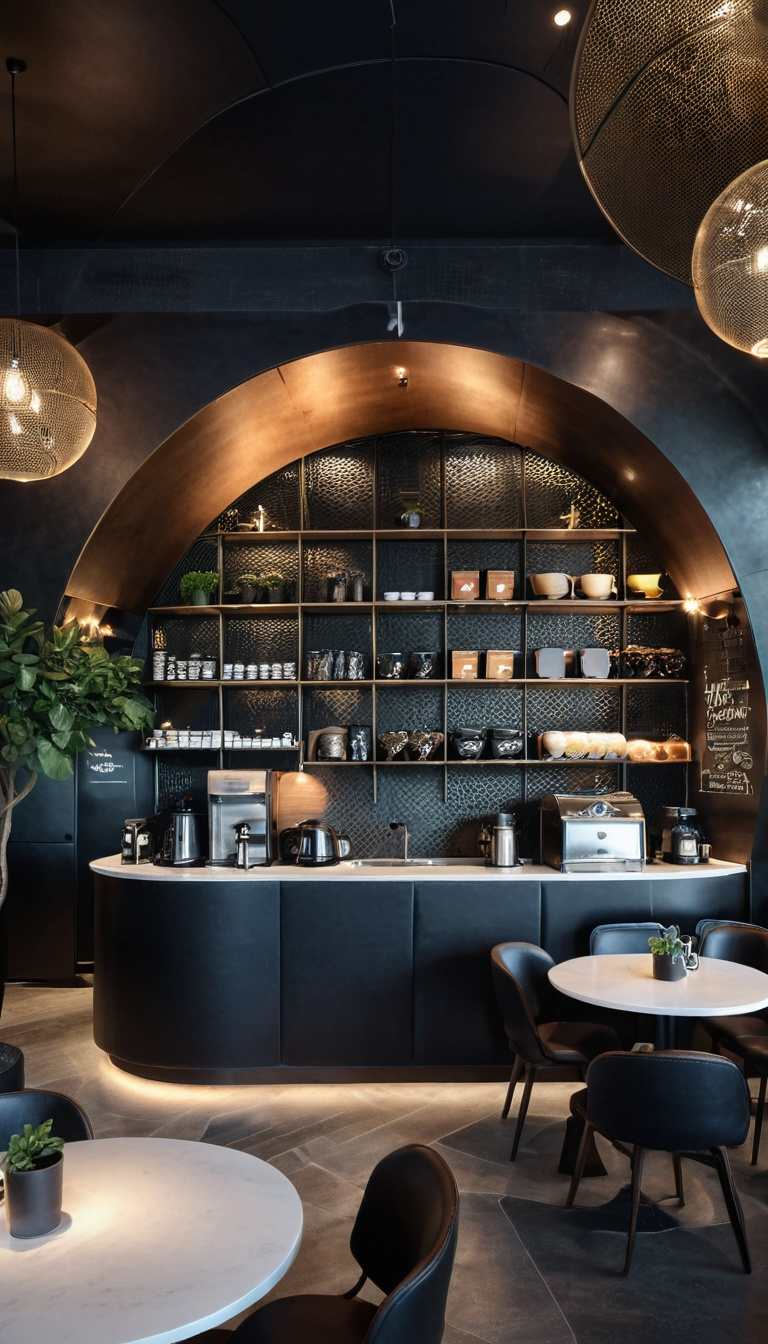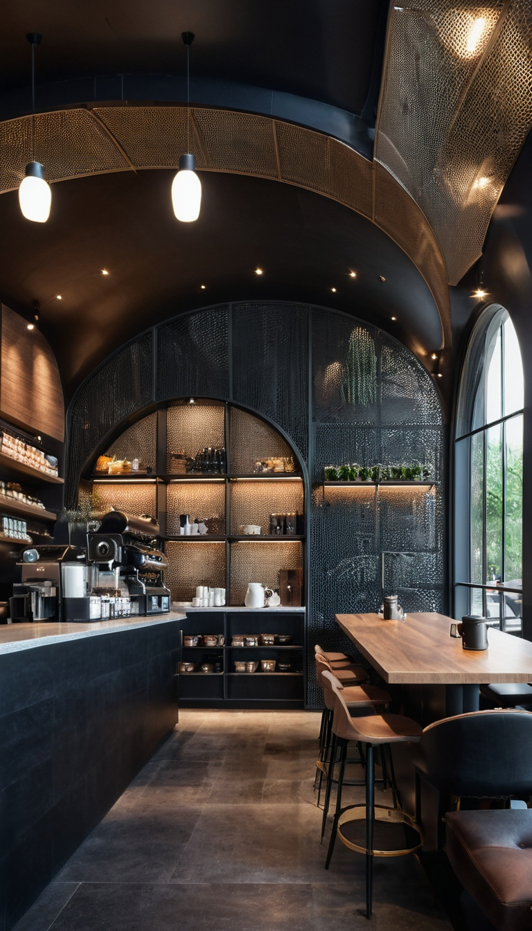 Coffee Shop Design with a Black Theme, Arc Architecture, and Expanded Metal